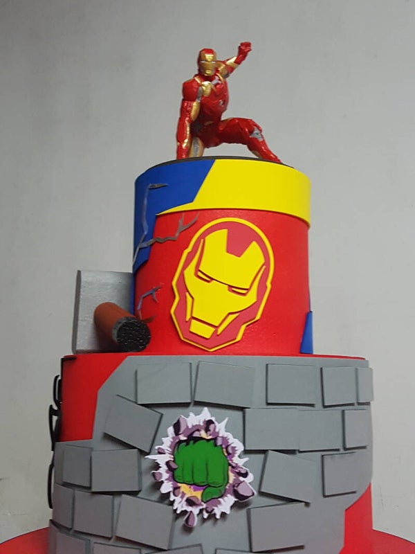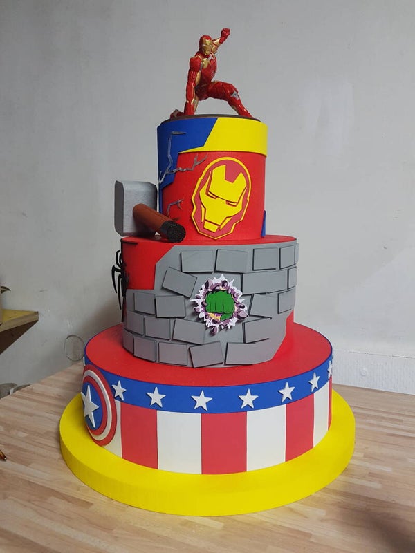 Torta modello Tema Avengers con personaggio 3d con numero e